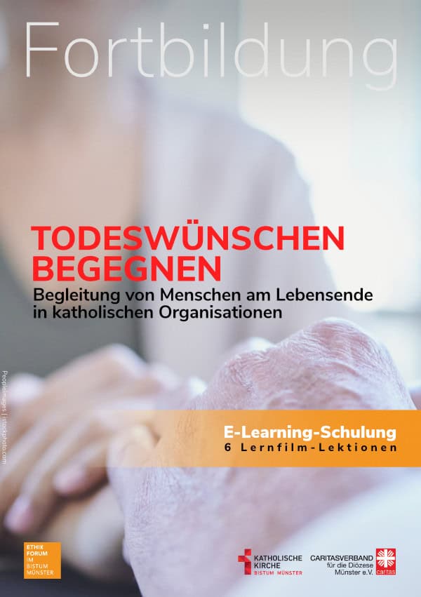 Die E-learning-Schulung „Todeswünschen begegnen“ umfasst sechs Lernfilme (Einführungsfilm und fünf Themenvertiefungen). Die einzelnen Filme dauern jeweils circa sechs Minuten. Um Zugangsdaten zu erhalten, nehmen Sie gern Kontakt auf. Hier gelangen Sie zur Schulung.